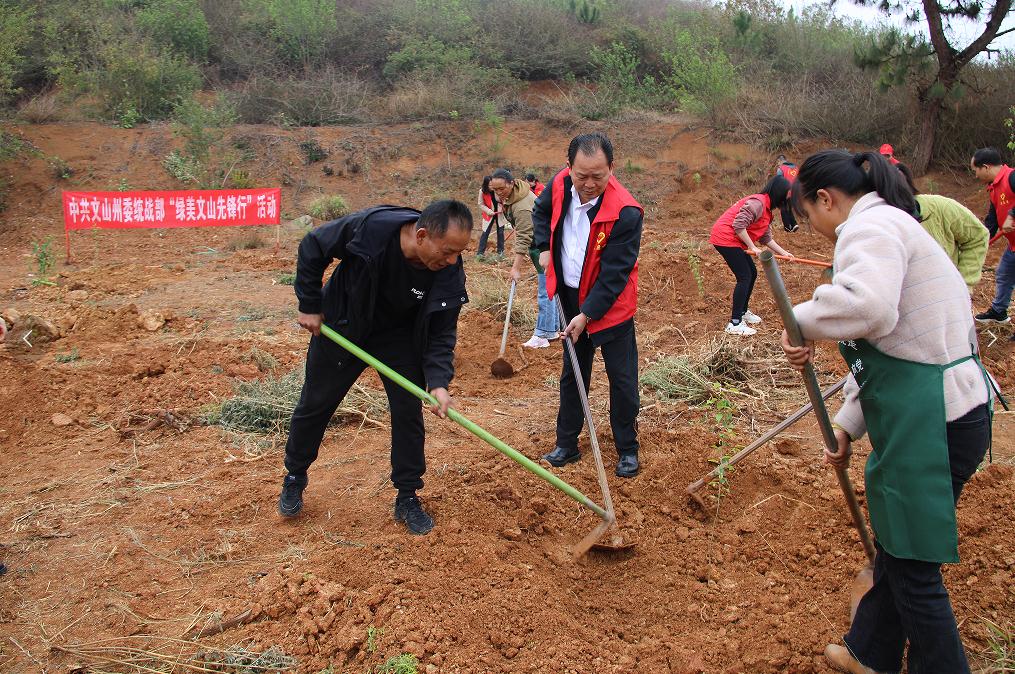 集中普法宣传活动结束后,州委统战部、州民族宗教委普法志愿者与群众一起开展了“绿美文山先锋行”活动,活动围绕春季植树和乡村卫生死角清扫开展,共同植树110棵。活动中,积极组织群众参与环境卫生治理、植树工作,发动群众为建设绿美乡村添砖加瓦,展现出志愿者与群众干在一起、一起干的其乐融融的场面。