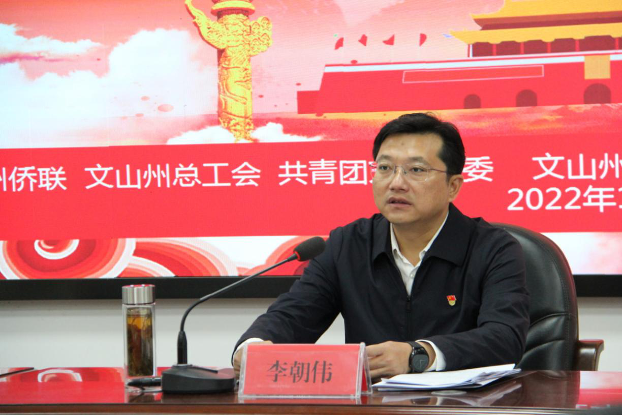 李朝伟要求全州群团组织紧密结合“党建带群建”实际,一要切实提高政治站位,充分认识党的二十大重大而深远的意义。全面领会党的二十大精神,深刻领会“两个确立”的决定性意义,密切结合本职工作,把思想和行动统一到党的二十大精神上来,坚定不移把党的二十大提出的目标任务落到实处;二要对标对表二十大报告作出的工作部署,在补短板、强弱项、扬优势、保安全上下功夫。完整、准确、全面贯彻新发展理念,在补短板、强弱项、扬优势、保安全上下功夫,找准工作突破口和切入点,努力闯出一条高质量跨越式发展的新路子;三要坚持学思用贯通、知信行统一,把党的二十大精神落实到群团工作各领域全过程。有效发挥桥梁纽带作用,在党委和政府同所联系群众之间建立畅通稳定的双向沟通渠道,倾听群众的呼声、反映群众的意愿,既把所联系群众的诉求如实告诉党和政府,也把党和政府的温暖充分传递给所联系的群众。四要坚持“党建带群建”工作原则,强“三性”,去“四化”,在凝心聚力上发挥群团组织独特作用,在服务党委政府工作大局上做出群团组织更大作为,促进文山高质量发展作出更大的贡献。