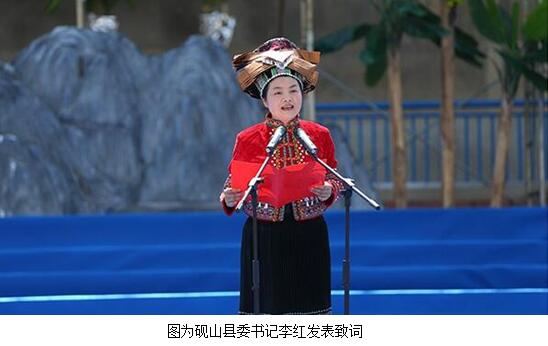 县委书记李红同志在致词中对前来参加活动的各级领导和来宾表示热烈的欢迎和感谢,并介绍了砚山的经济社会发展、“三月三”节日等民俗风情、民族团结进步示范创建成果以及“十三五”时期提出争创全国民族团结进步示范县的奋斗目标。希望借“三月三”系列活动,搭建砚山县壮学会与州内外壮学会沟通交流、学习借鉴、增进友谊桥梁,不断提升民族文化的向心力、凝聚力和影响力,促进各民族共同团结奋斗、共同繁荣发展,推动砚山取得新进步,迈上新台阶。文艺演出有壮族传统舞蹈《草人舞》、苗族传统舞蹈《芦笙舞》、彝族《弦子舞》等国家、省级非物质文化遗产保护项目登场,赢得了阵阵掌声和欢呼声。体育馆旁边的七都广场设置三月三民族特色商品展销,民族服饰、民族小吃等商品琳琅满目,各族群众们观看完文艺表演就再展销会上逛逛,吃点糯米饭、绿粑粑等特色小吃,非常惬意。晚上在墨山广场还有壮族文化成果展播,多方面的宣传壮族文化。