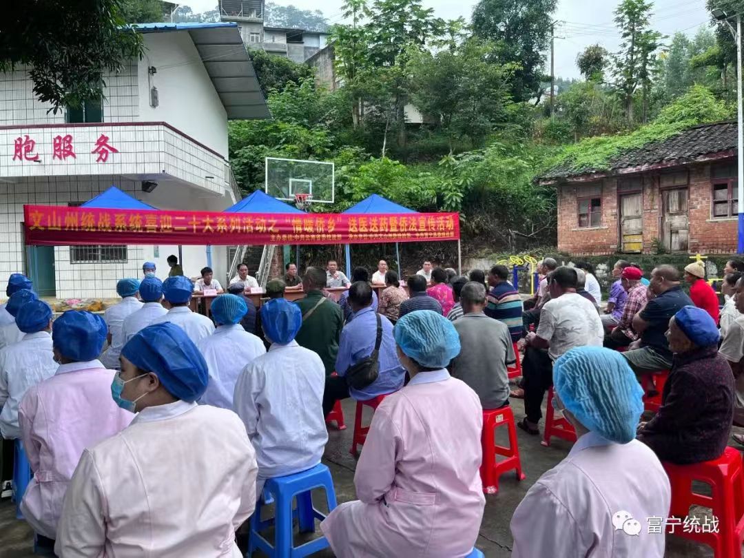 为切实解决广大侨民群众在健康需求和法律服务方面急难愁盼问题,推进全县统一战线及侨务工作创新发展,以实际行动迎接党的二十大胜利召开。9月14日,富宁统战系统到者桑乡解放寨村小组开展“喜迎二十大 情暖侨乡”送医送药暨侨法宣传活动。州委统战部副部长、台办主任韦恩祥,州侨联党组成员、三级调研员田通福,县委常委、统战部长冷吉周出席活动。