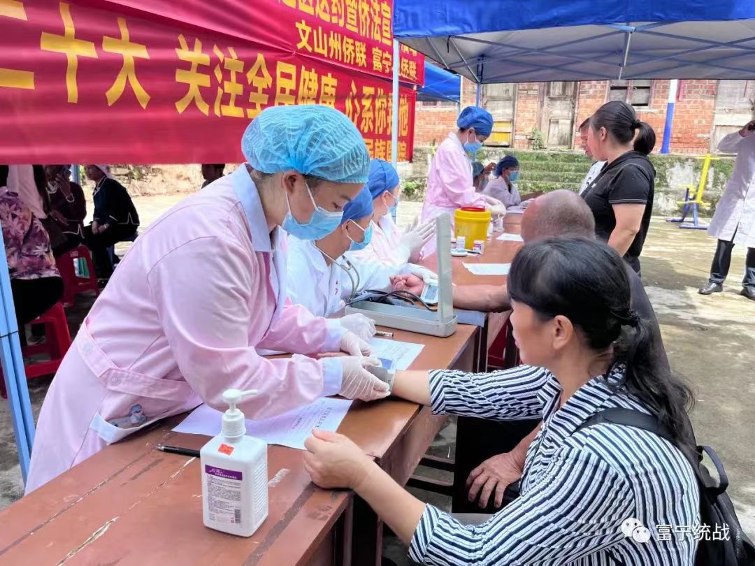 活动期间,富宁民族医院医疗团队为到场的归侨侨眷开展了内科、眼科、骨科等诊疗服务,对健康生活知识进行了专题讲座;党员志愿者围绕侨法、民族团结、妇女儿童等知识进行了宣传宣讲,针对群众的问题作了政策解答;州委统战部、州侨联深入实地调研了归侨侨眷的生产生活现状,对困难归侨侨眷进行了慰问,为他们送去了党和政府的关怀和温暖。